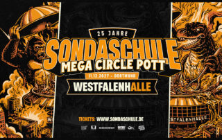 SONDASCHULE feiern 2027 ihr 25-jähriges Bandjubiläum und kündigen dafür nicht weniger als das größte Konzert ihrer bisherigen Karriere an: Am 11. Dezember 2027 verwandelt die Band die Westfalenhalle Dortmund in den „MEGA CIRCLE POTT“.